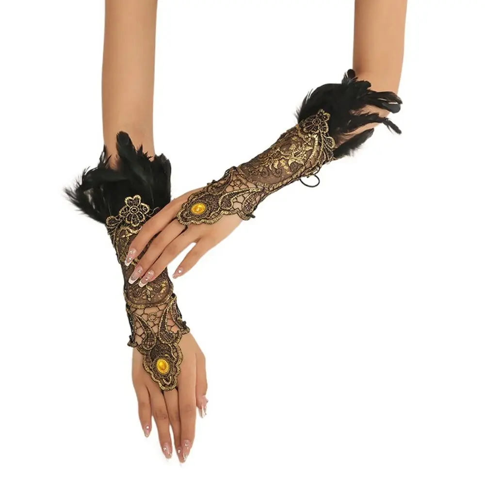 Элегантные модные фатиновые варежки для косплея, рукавицы для локтя, рукавицы на цепочке, солнцезащитные кружевные перчатки, браслеты на цепочке, женские