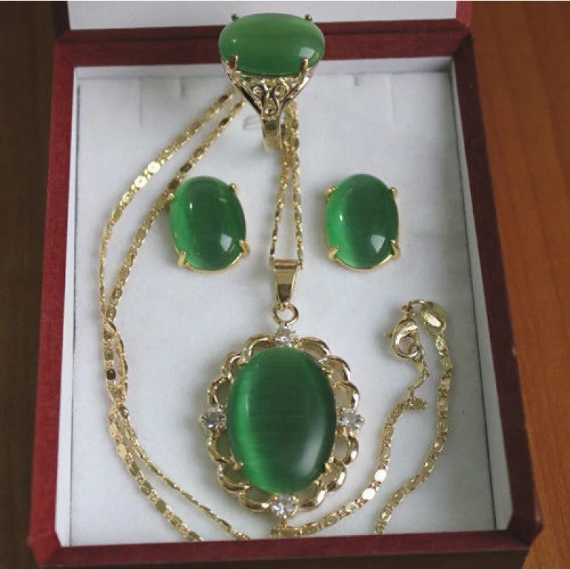 Элегантные серьги с тонкой инкрустацией зеленые нефриты Nelace набор колец