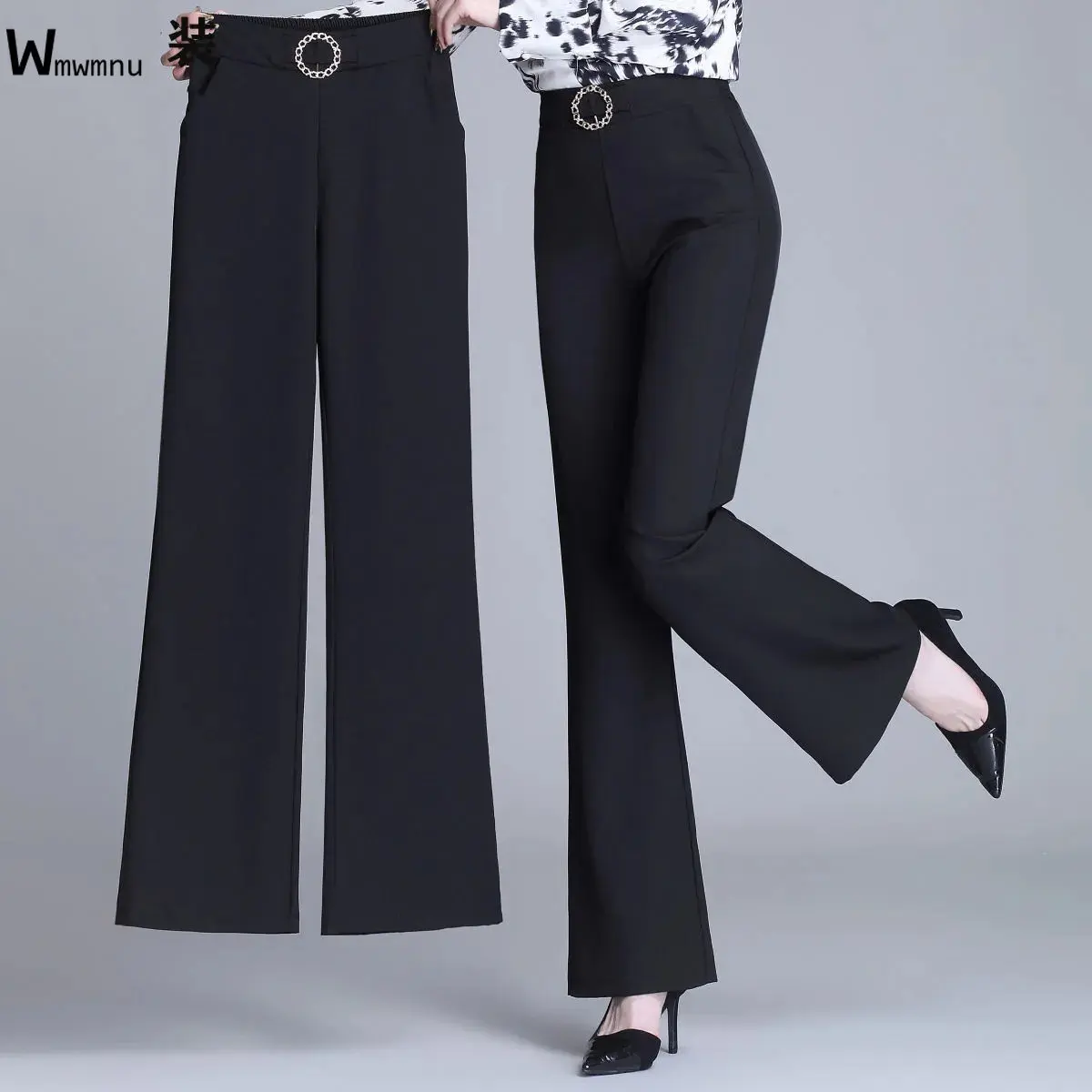 Элегантные тонкие расклешенные брюки, корейские летние женские брюки Cintura Alta, модные шикарные брюки абрикосового цвета с эластичным поясом для женщин