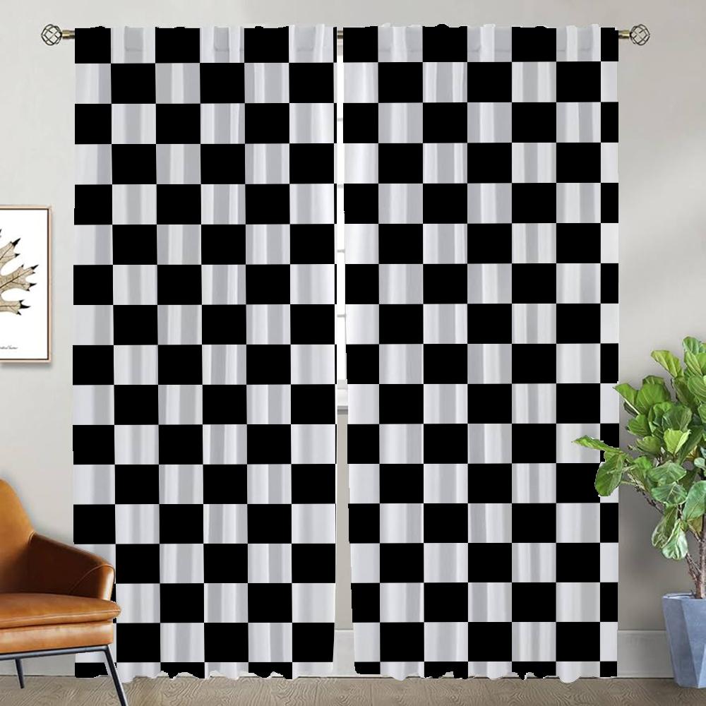 Элегантные шторы для комнаты, для камеры, шахматные жалюзи, тюль для спальни, украшения на Хэллоуин, затемняющие шторы для гостиной W50xH70cmx2pcs-CL