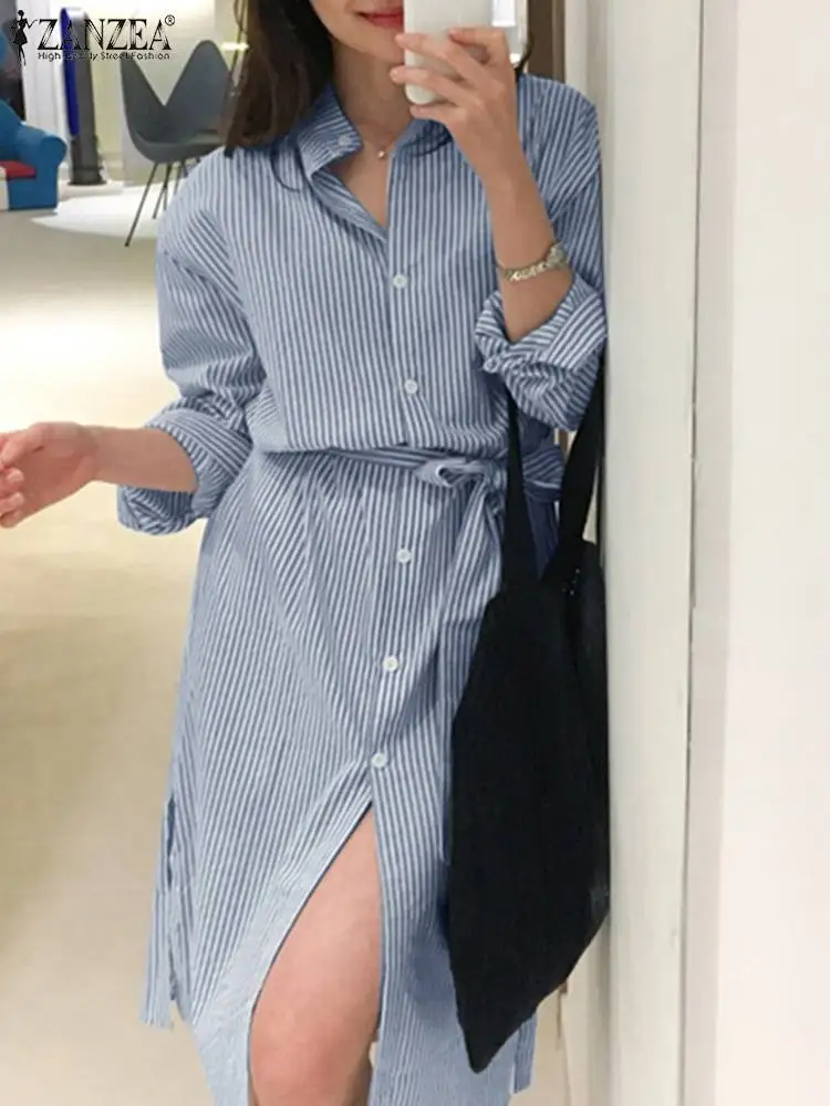 Элегантный женский сарафан ZANZEA, модные повседневные праздничные платья, платье в полоску с круглым вырезом и длинным рукавом, винтажные платья 2023