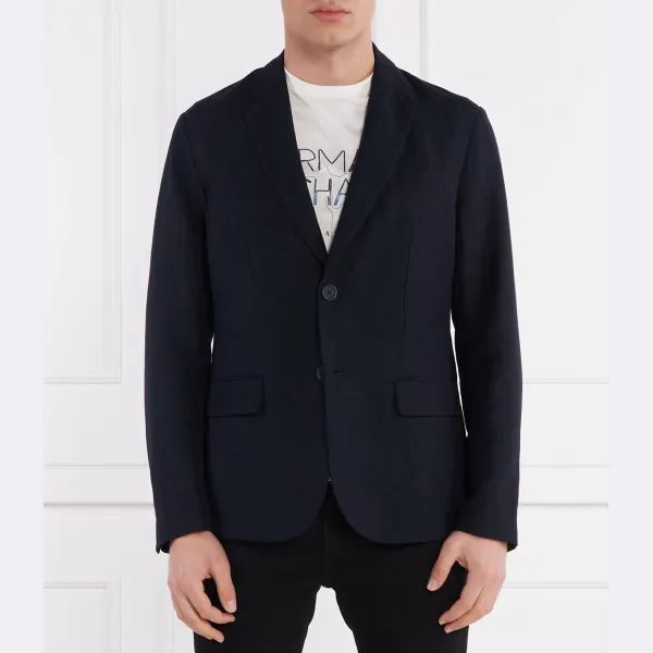 Элегантный льняной жакет классического кроя Armani Exchange, синий