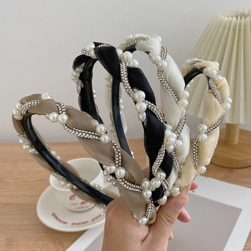 Элегантный плетеный ободок для волос, украшение для волос с жемчугом, сетчатый ободок для волос с цепочкой, аксессуары для волос