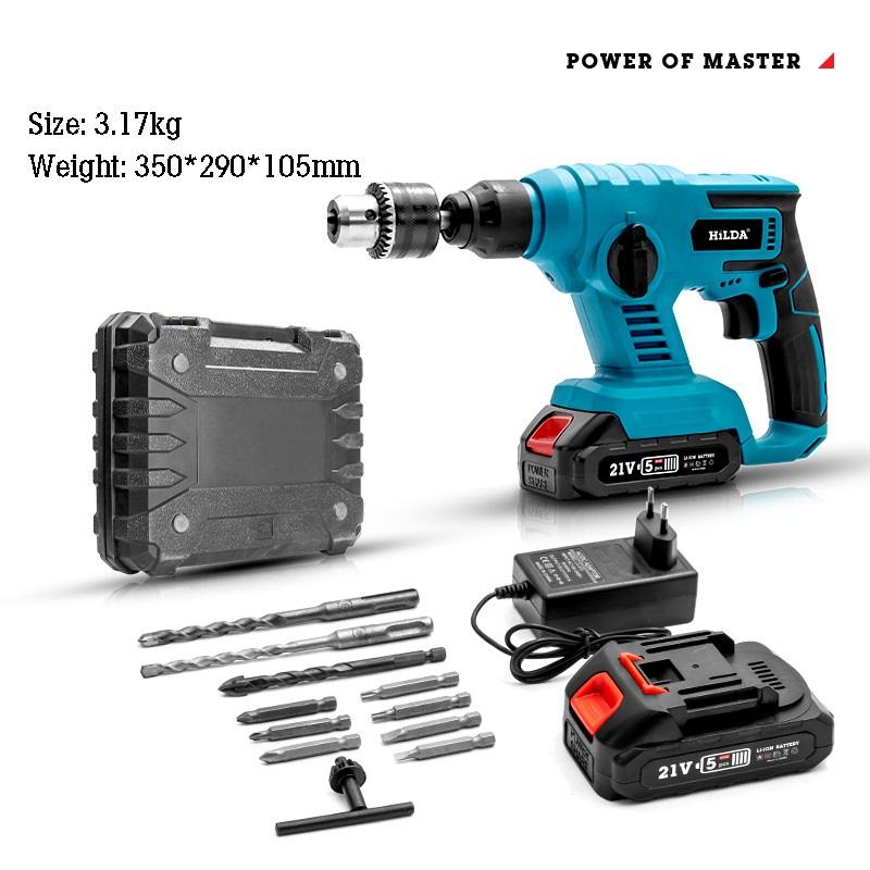 Электрическая аккумуляторная отвертка Многофункциональный перфоратор Электрический молоток для сноса Ударная дрель 1 battery синий