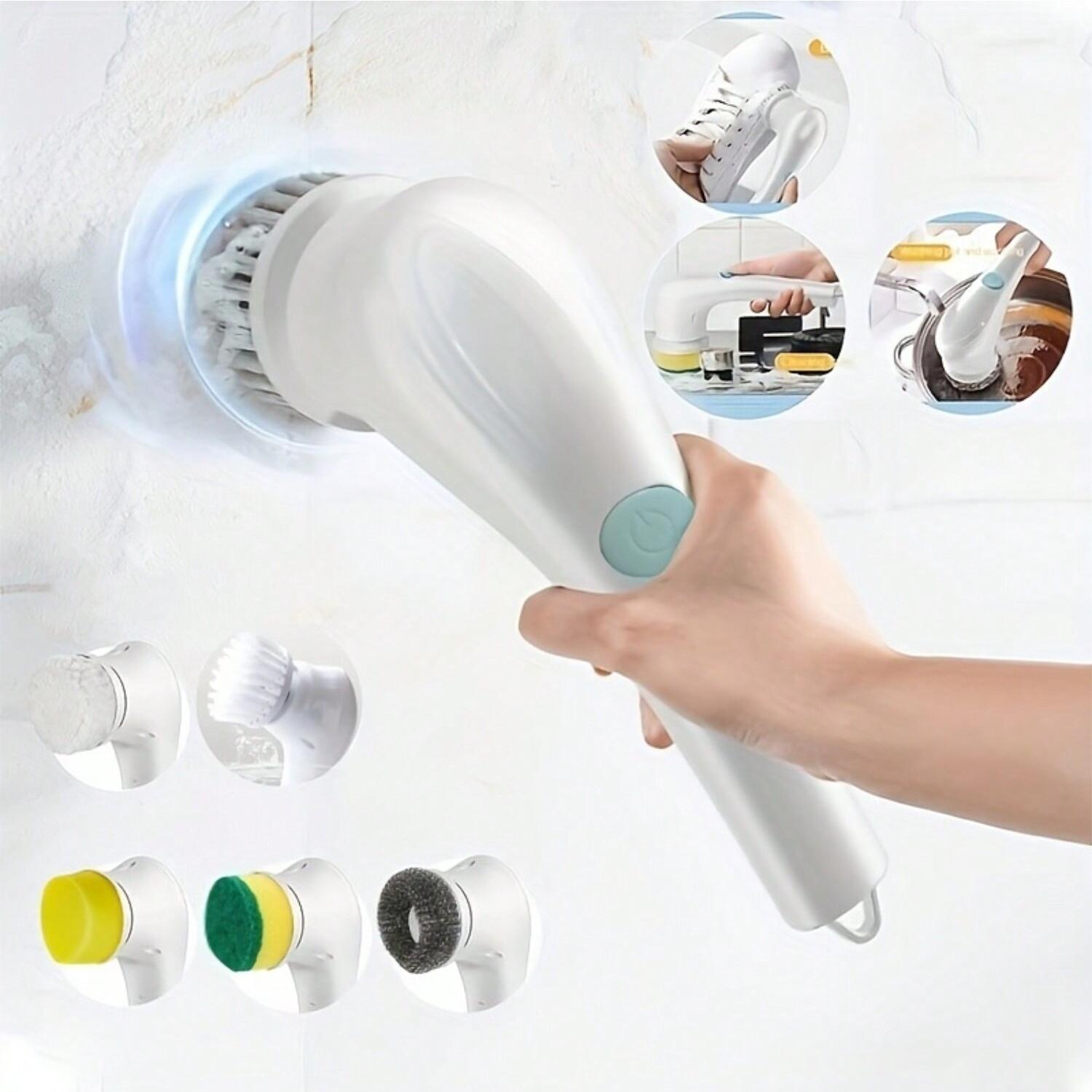 Электрическая беспроводная моторизованная чистящая щетка и пять сменных насадок, ручная моечная машина для душа белый