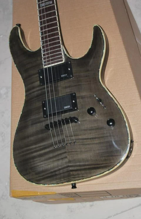 Электрическая гитара E S P Horizon NT II STBC, черная, серая, с рисунком пламени, клена, с углублением и белой шваброй