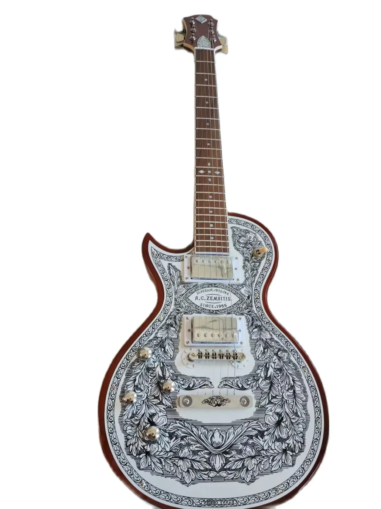 Электрическая гитара Zemaitis с левой ручкой, металлическая передняя серия, натуральные MF 22 лада