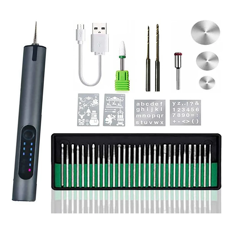 Электрическая гравировальная ручка с 35 битами, USB Перезаряжаемый гравер, беспроводной гравировальный станок, портативный гравер «сделай сам», серый