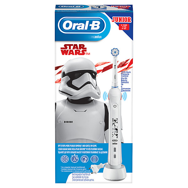 Oral-B - марка зубных щеток №1, используемая и рекомендуемая большинством стоматологов мира!* Откройте для себя Oral-B Junior! Oral-B Junior «Звездные войны» для детей разработана совместно со стоматологами для превосходного очищения полости рта.