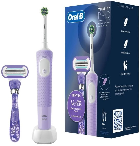 Электрическая зубная щетка Oral-B Vitality Pro X Clean с бритвой Venus Swirl (лиловый)