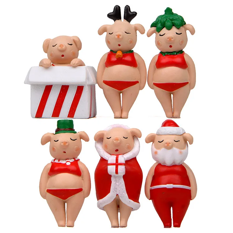 6 pcs pvc Christmas jenny pig nicknack Miniature landscape gardening figures home decoration Creative toys gift for kids
