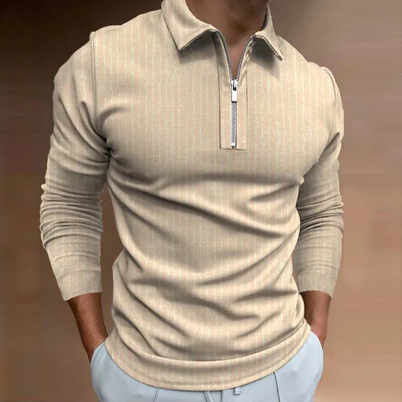 2021 European and American Men's cotton polo shirt, golf Breathable solid color printed shirt, long sleeve lapel zipper clothing