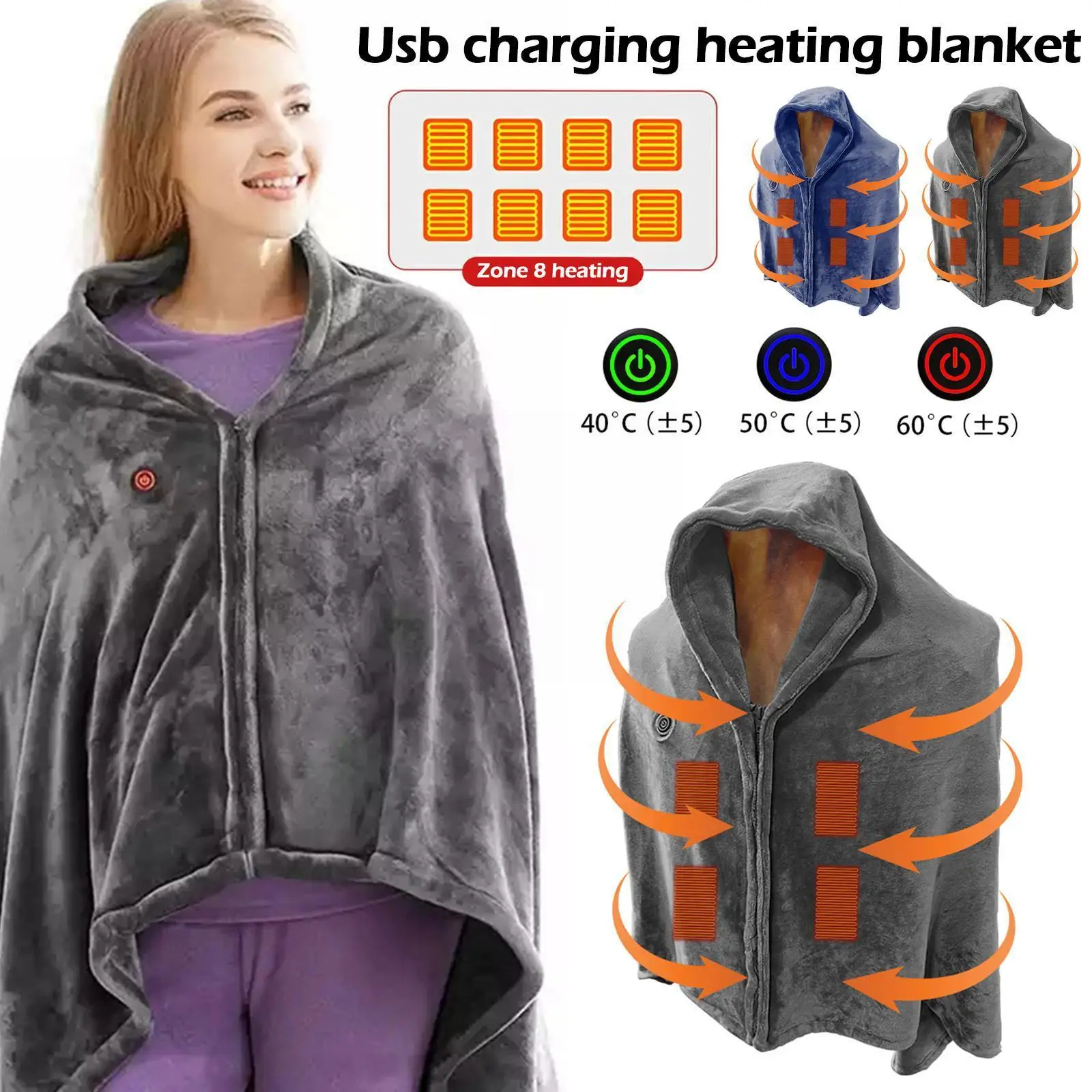 Электрическое теплое одеяло с Usb-разъемом, теплая шаль, коралловый флис, регулируемая плюшевая температура, 3-скоростной зимний теплый больш...
