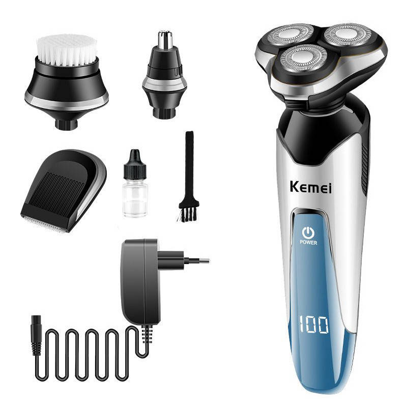 Электробритва для мужчин роторная для влажного и сухого бритья с плавающими головками и триммером Kemei