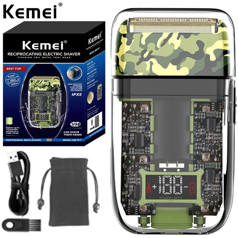 Электробритва Kemei для мужчин, аккумуляторная бритва для бороды, Влажная и сухая, водонепроницаемая, двойное использование, быстрая зарядка