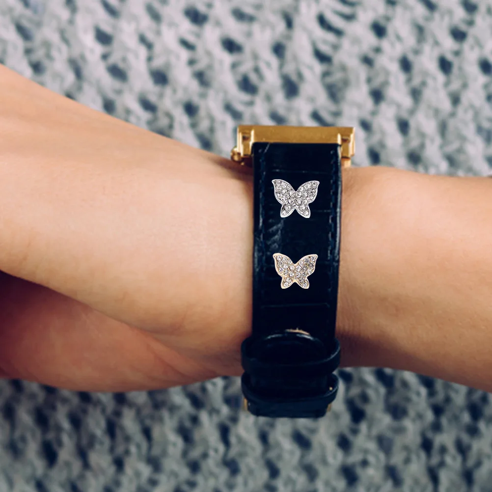 4pcs Full Diamond Decorative Watchband Charms Alloy Studs for Silicone Straps Fashion Accessory Butterflies Design Nail