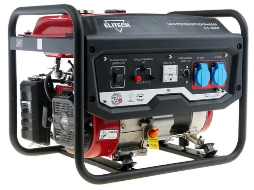 Электрогенератор ELITECH СГБ 2500 Р, однофазный, синхронный, бензиновый, 6.5 л.с., 2.2 кВт, 2xEURO 16A (180642), СГБ 2500 Р