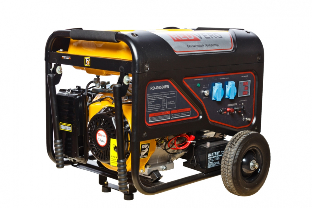 Электрогенератор RedVerg RD-G6500EN, однофазный, синхронный, бензиновый, 13 л.с., 5.5кВт, 2xEURO 16A, RD-G6500EN