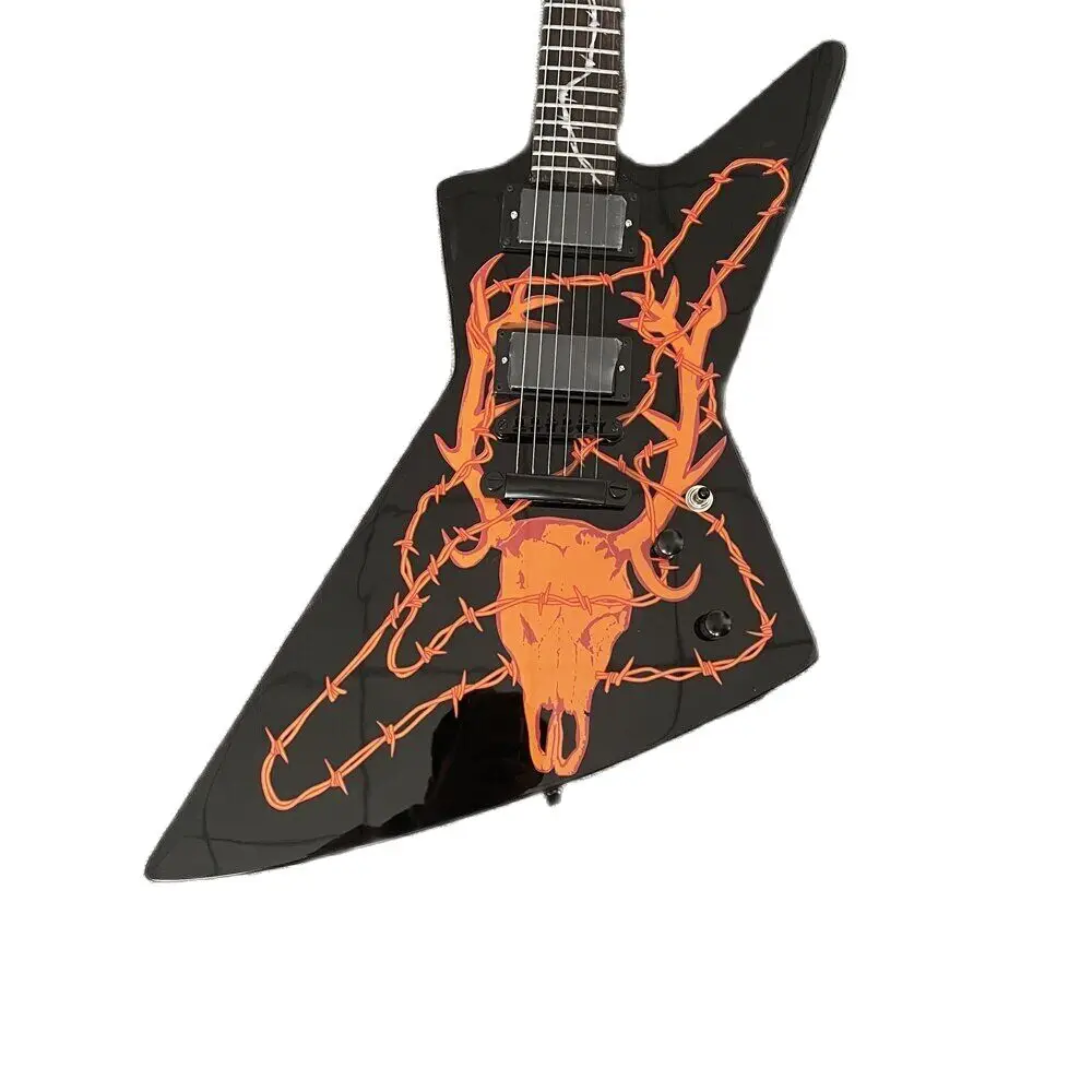 Электрогитара Alien по индивидуальному заказу, узор в виде головы оленя, инкрустация грифом