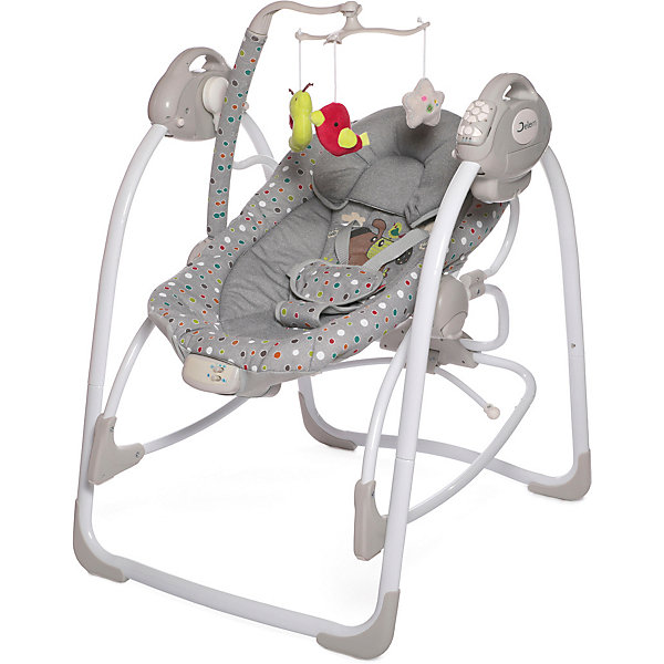 Электрокачели 2 в одном могут использоваться как обычные качели или как простой шезлонг. Конструкция модели простая и компактная. Спинка имеет два положения, оснащены шестью режимами укачивания. В музыкальный блок встроено 12 мелодий, громкость регулируется, можно настроить воспроизведение, используя таймер. В комплект входит съёмная дуга с игрушками. Обивка обладает водоотталкивающими свойствами.