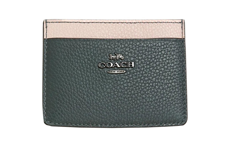 Кошелек для карт Кожаный держатель для карточек Миниатюрный Женский Зеленый и Бежевый COACH