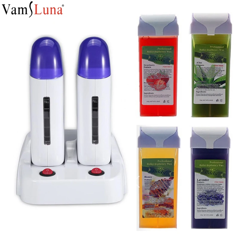 Epilator Double Depilatory Wax Heater With 3 Wax Cartridge Hot Body Hair Removal Roller Waxing Machine For Salon Beauty