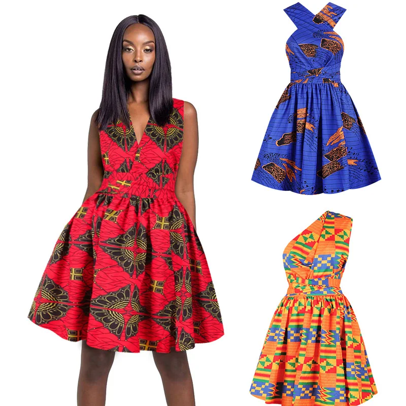Модное Африканское платье для женщин, вечернее мини-платье с принтом Дашики, Африканское платье Базина, африканская одежда, платья Анкары, о...