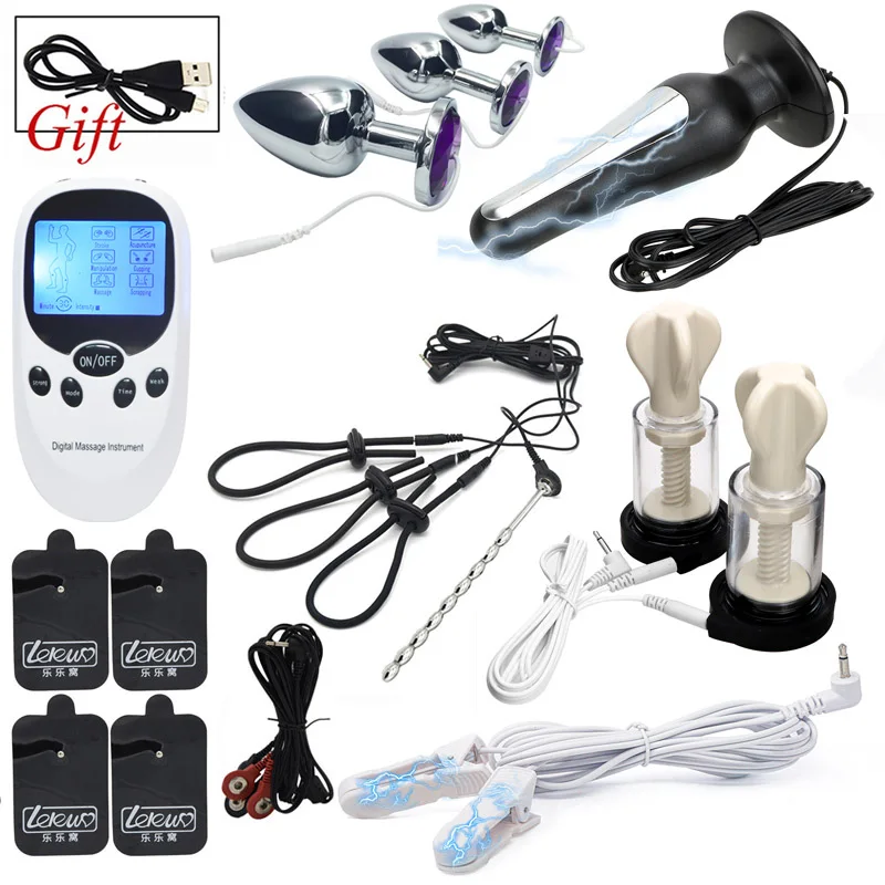 Электро-шок, импульсная Бриллиантовая электрическая Бриллиантовая кольцевая уретрная пробка, зажимы для сосков, Массажная подушка для мас...