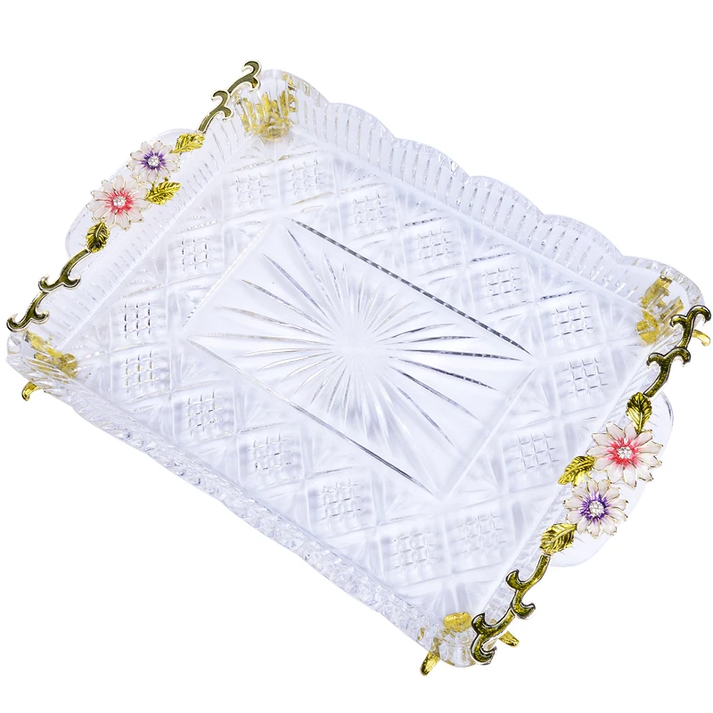 Эмалированный поднос для дома, креативная тарелка для чашки с водой, цветочное украшение, хрустальный стеклянный поднос, большие тарелки дл...