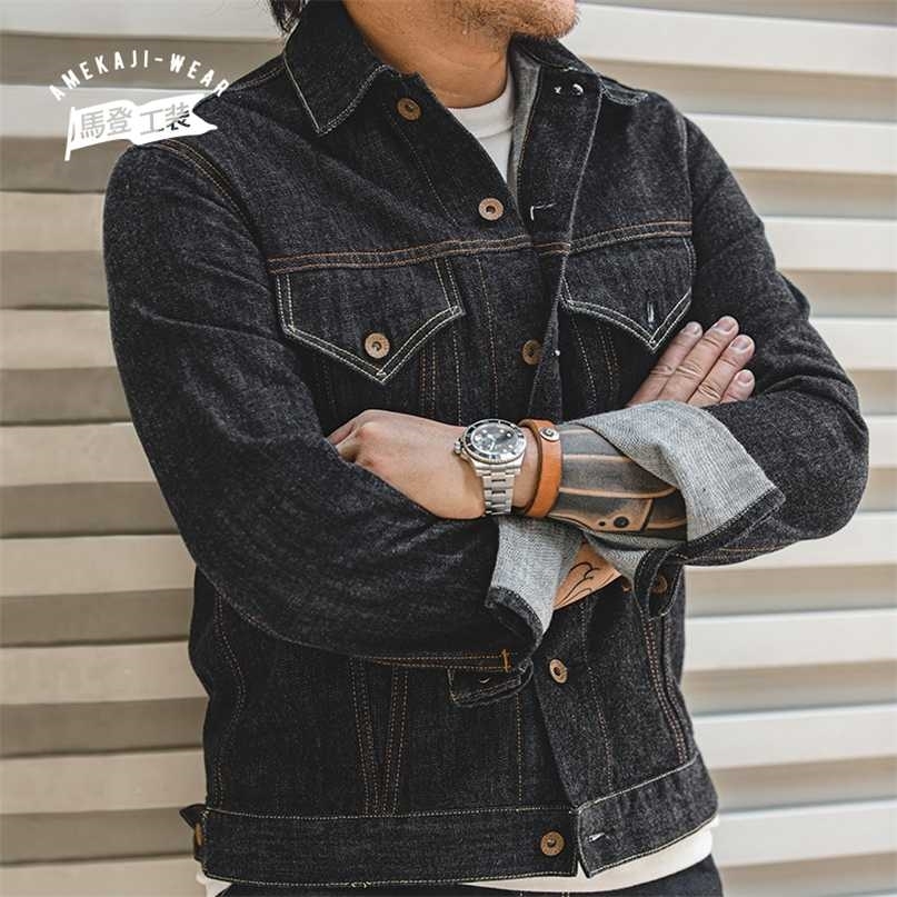 Maden Retro Blue Denim Jackets For Men Casual Crowboy Streetwear Coat Bomber Jacket Harajuku Vintage Outerwear Men's Clothing 211110