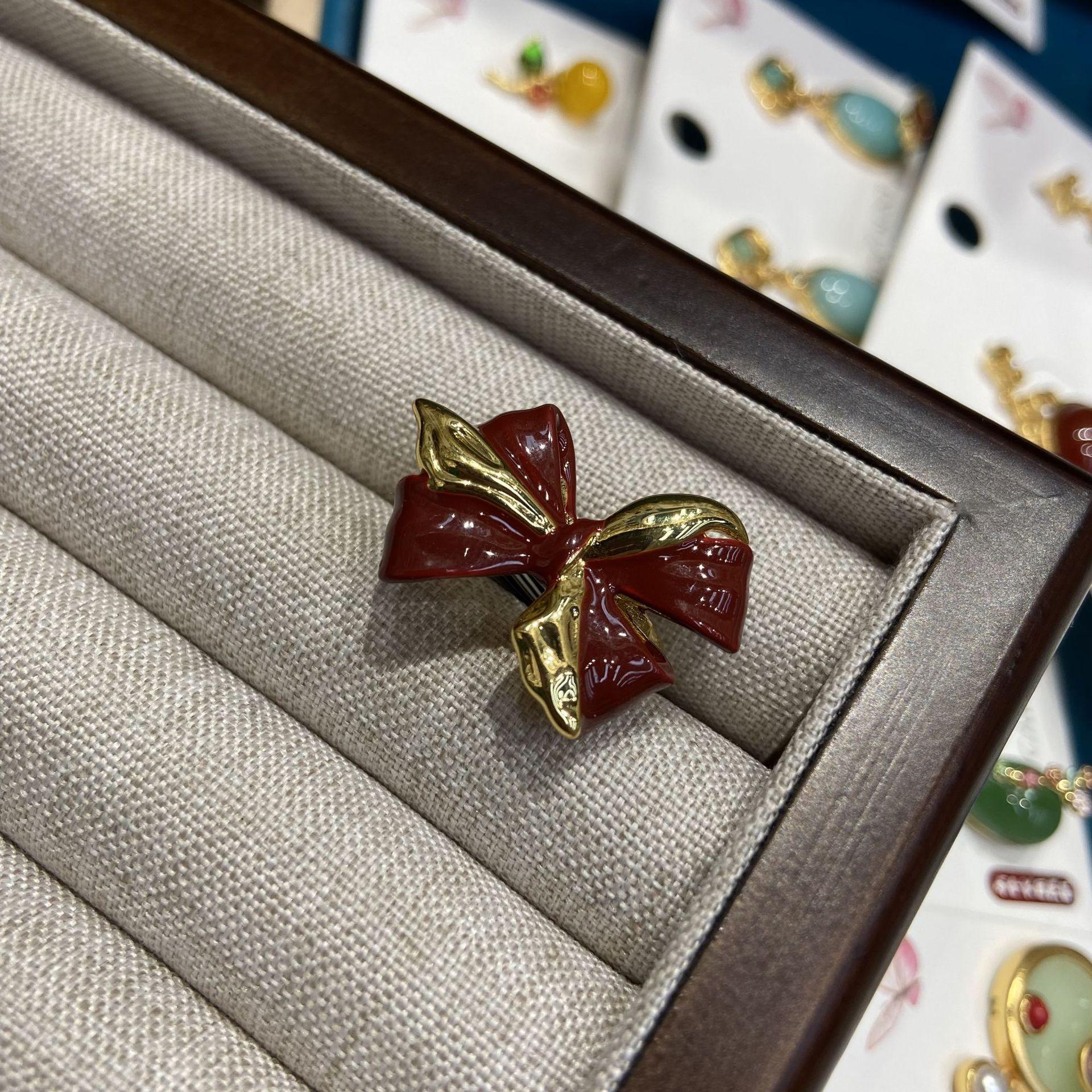 Эмаль капельное масло бордового цвета контрастного цвета бант кольцо женское изысканное медное покрытие настоящее золото осень и зима новое открытое кольцо для волос