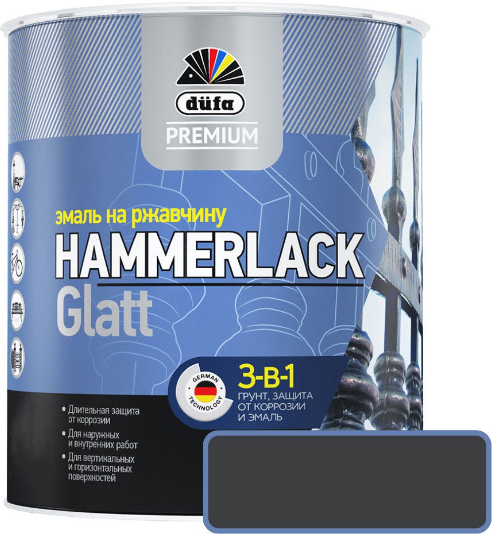 Эмаль Dufa Hammerlack на ржавчину гладкая RAL7024 (2 л, графитово-серый)