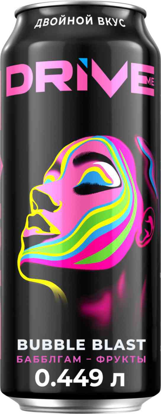 Drive Me – для тех, кто наполнен свежими идеями и любит жить на гребне волны. "Драйв Ми" заводит!Drive Me Bubble Blast – яркий вкус жевательной резинки, дающий заряд бодрости во время рабочего дня, учёбы или путешествия.Кофеин, таурин, витамины – вот комплекс ингредиентов для поддержания энергии. Кофеин обеспечивает активность и способствует борьбе с сонливостью, таурин обладает антиоксидантными свойствами, а витамины группы В способствуют снижению усталости, играют важную роль в функционировании нервной системы, а также участвуют в обмене веществ.