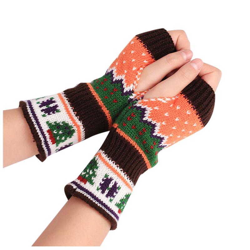 Women's Knitted Gloves Half Finger Gloves Color Warm Christmas Girl Autumn And Winter Fashion Accessories Arm Sleeve