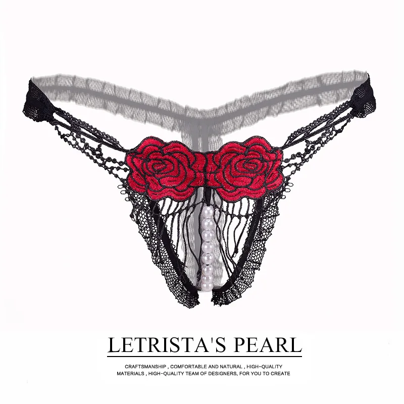 Эротические сексуальные кружевные перламутровые Стринги Сексуальное белье с вышивкой розовые жемчужные прозрачные трусики женские труси...