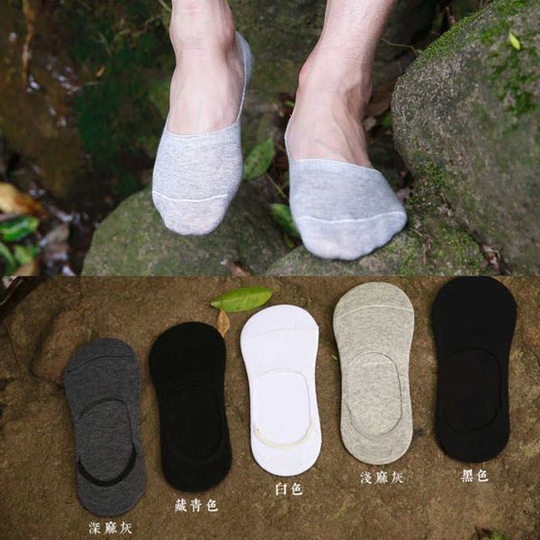 summer shallow mouth silicone skid men's beans pure color boat invisible socks, Black