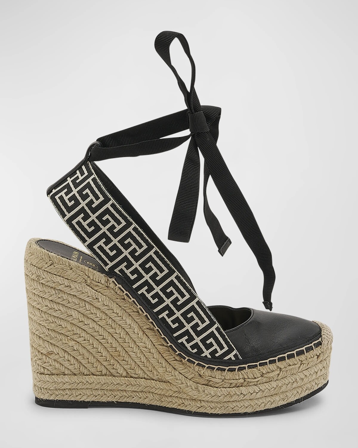Эспадрильи Alex на танкетке с завязками на щиколотке и монограммой Balmain, цвет Ivoire Noir