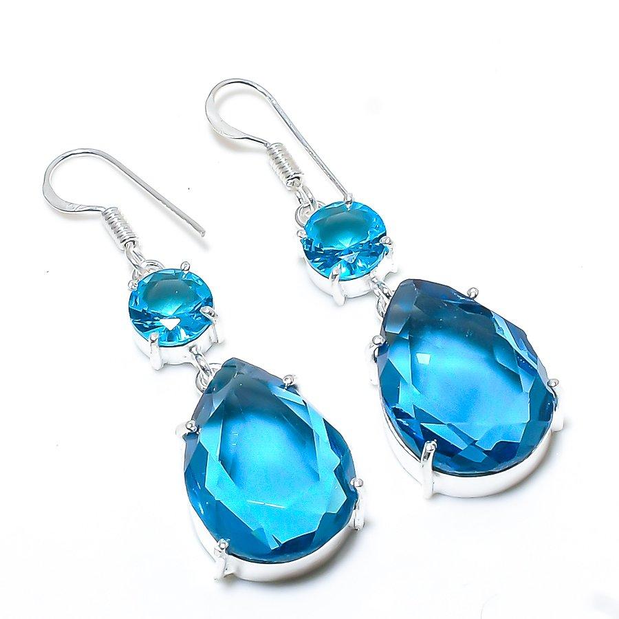 Этнические ювелирные серьги ручной работы из швейцарского синего топаза с драгоценным камнем 2,01 дюйма SR-6645