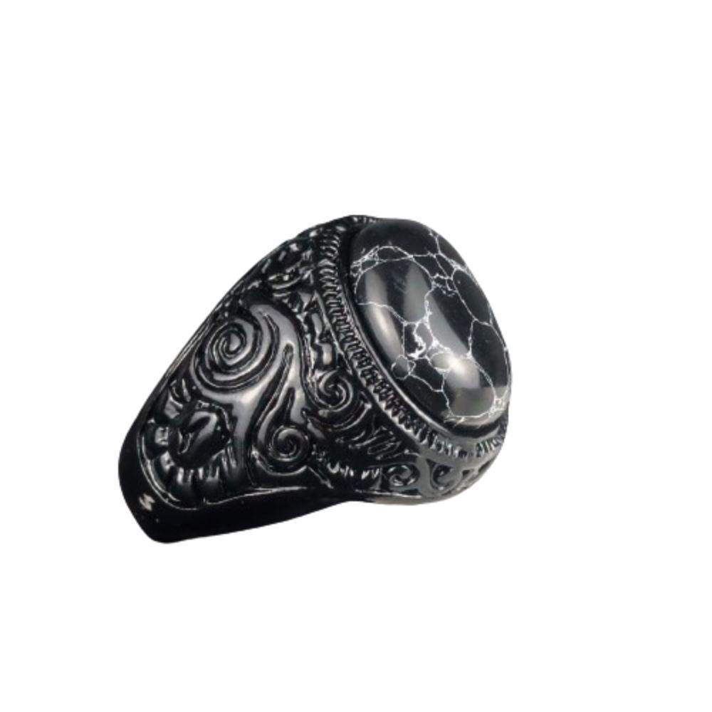 Этнический стиль Черное гравированное кольцо Черное панк кольцо на фалангу Модное кольцо с тигровым глазом Подарок 7 чёрный