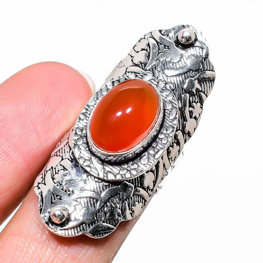 Этническое ювелирное кольцо ручной работы с оранжевым сердоликом, размер 6,5 SR-9136