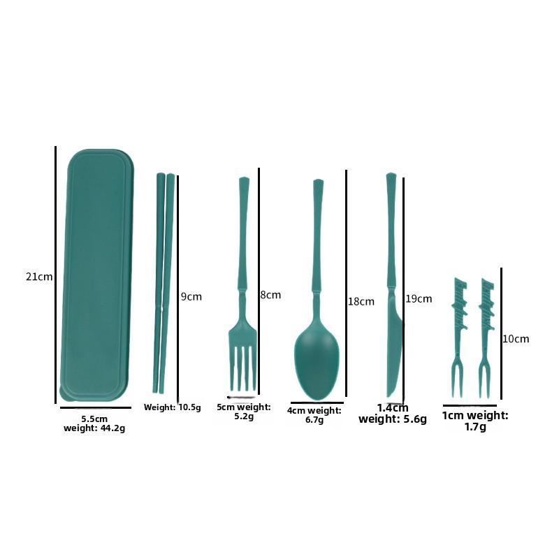 Этот набор посуды гладкий и круглый, с пыленепроницаемыми крышками.. Это портативная посуда для ножей, вилок, ложек и палочек для еды темно-зеленого