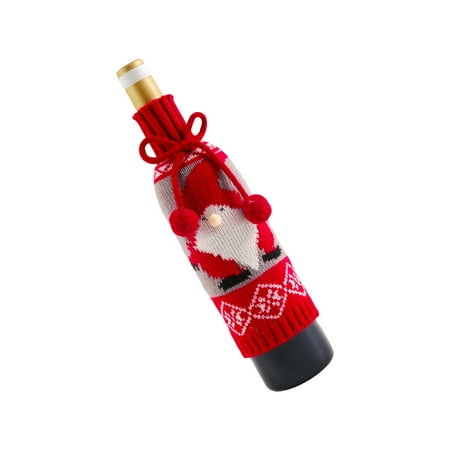 ELENXS Bottle Cover Christmas Party Bowknot Bottle Bag Knitting Table Decoration Wine Protector Santa Claus