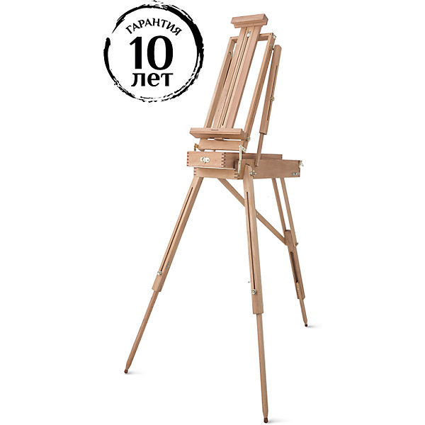 Этюдный ящик облегченной конструкции. Имеет все преимущества классического этюдника в уменьшенном варианте. Может использоваться как для работы в помещении, так и на улице. Ножки этюдника регулируются по высоте, что позволяет подстроить этюдник под свой рост, а также работать как сидя, так и стоя. Полка для холста также регулируется. Холст можно наклонить как на себя, так и от себя, в зависимости от потребностей художника. В ящик этюдника вы можете положить кисти, краски и другие принадлежности. В сложенном виде его можно использовать как настольный мольберт. В комплект входит палитра и ремешок для ношения на плече. Выполнен из бука.