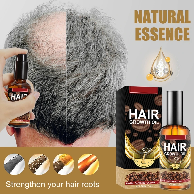 Эфирные масла для роста волос, 50 мл, биотин, кофеин, касторовые питательные вещества для восстановления и увлажнения волос