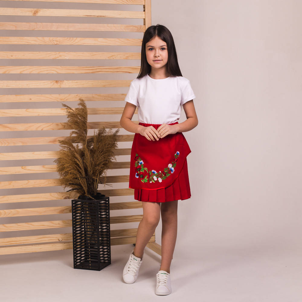 Червона вишита спідничка для дівчинки. Спідничку можна носити під вишиваночку, звичайну блузу або футболочку з вишивкою чи без неї.
