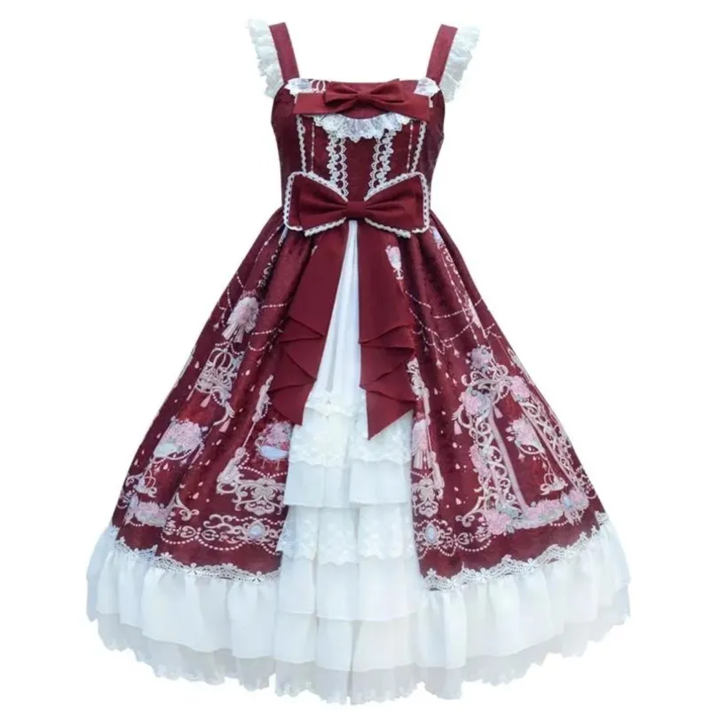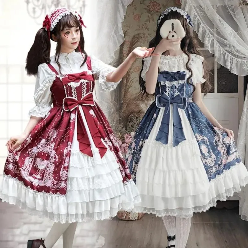 Юбка в стиле "Лолита", милое мягкое платье на бретелях в японском стиле для девочек