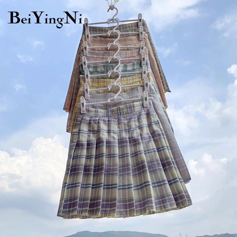 Юбка в японском стиле Beiyingni, Женская однотонная Повседневная Милая Мини-юбка в клетку для девушек, винтажная модная Милая юбка для колледжа ...