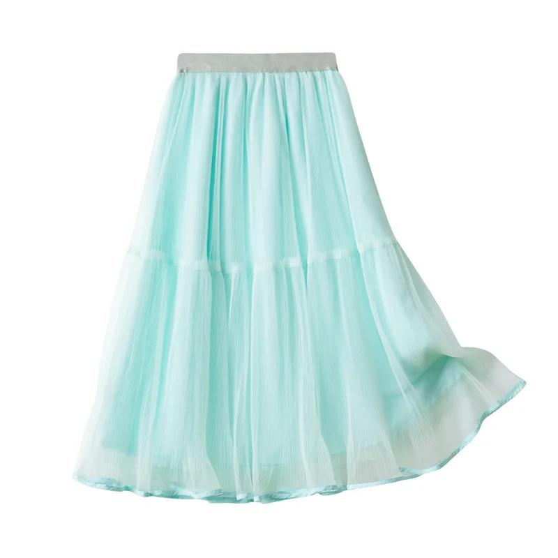 Юбка для девочек, летняя сетчатая модная универсальная юбка принцессы для детей, повседневная длинная юбка с эластичной резинкой на талии для подростков, школьников, 4-12 лет 120cm зелёный