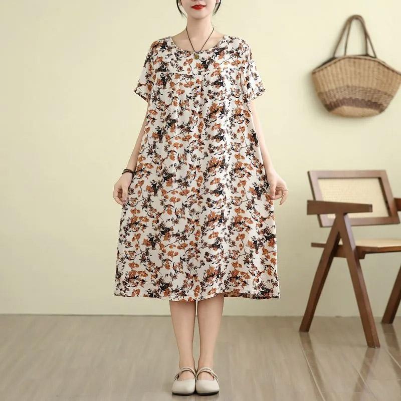 Юбка для женщин из хлопка, летняя, большого размера, свободная, цветочная, винтажная, повседневная, с принтом, мягкая, длинная, праздничные платья XL