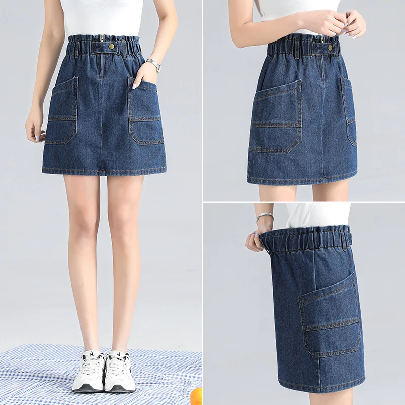 Юбка женская джинсовая трапециевидная с эластичной талией и карманами
